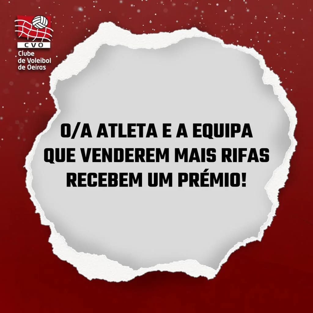 Assim, apelamos a toda família CVO, treinadores, dirigentes, atletas e amigos a que nos ajudem a vender rifas a 1€. Iremos sortear 3 cabazes de Natal no dia 21 dezembro, dia do Torneio de Natal do CVO no pavilhão São Julião da Barra, e a equipa e o atleta que mais venderem também terão uma prenda surpresa!